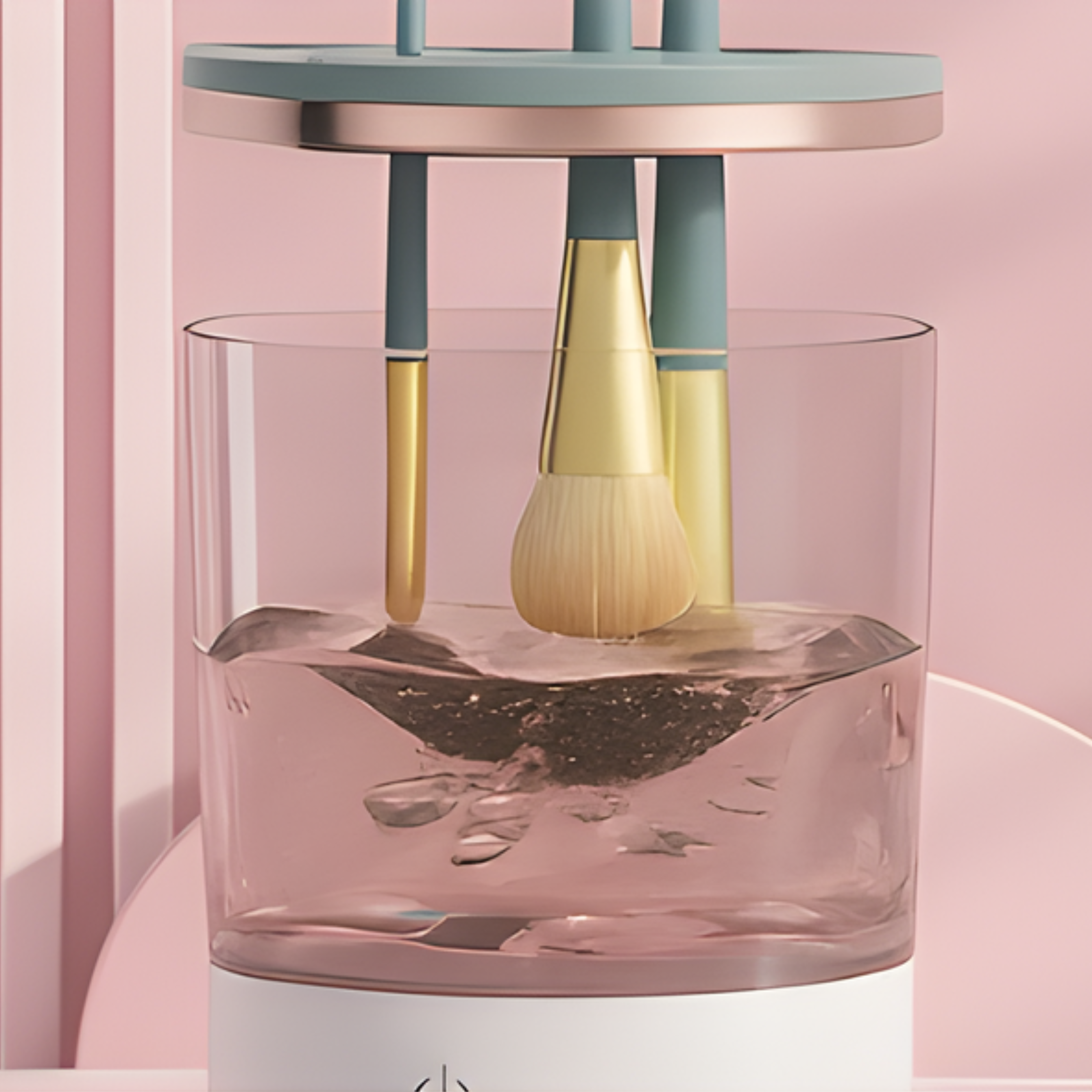 Conecta el dispositivo a una fuente de alimentación USB de 5V/2A y añade agua hasta el nivel indicado. Puedes agregar unas gotas de limpiador para brochas.